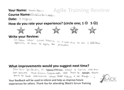 I've taken other scrum training so it was nice to see a different approach on how to apply the principles.